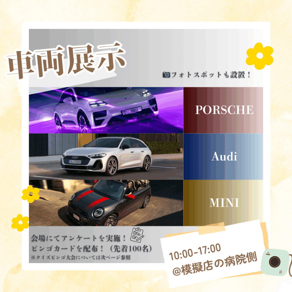 間近でカッコイイ車を見られるチャンス! クイズビンゴ大会が今年からスタート!!